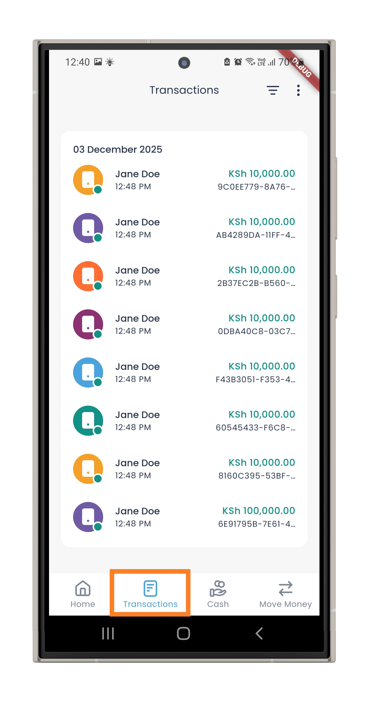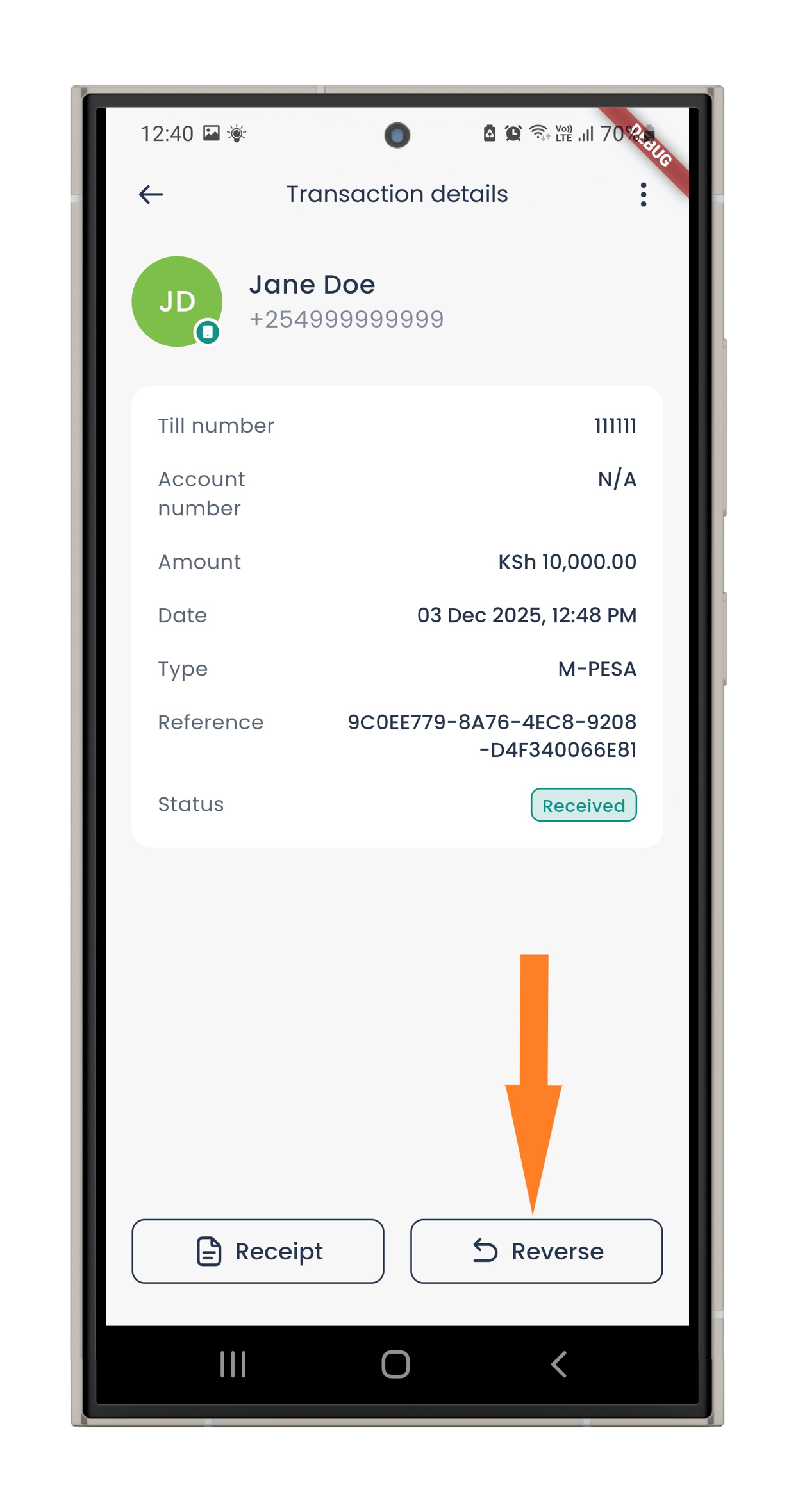 2: View your transactions grouped by day. Choose the specific transaction you want to reverse.