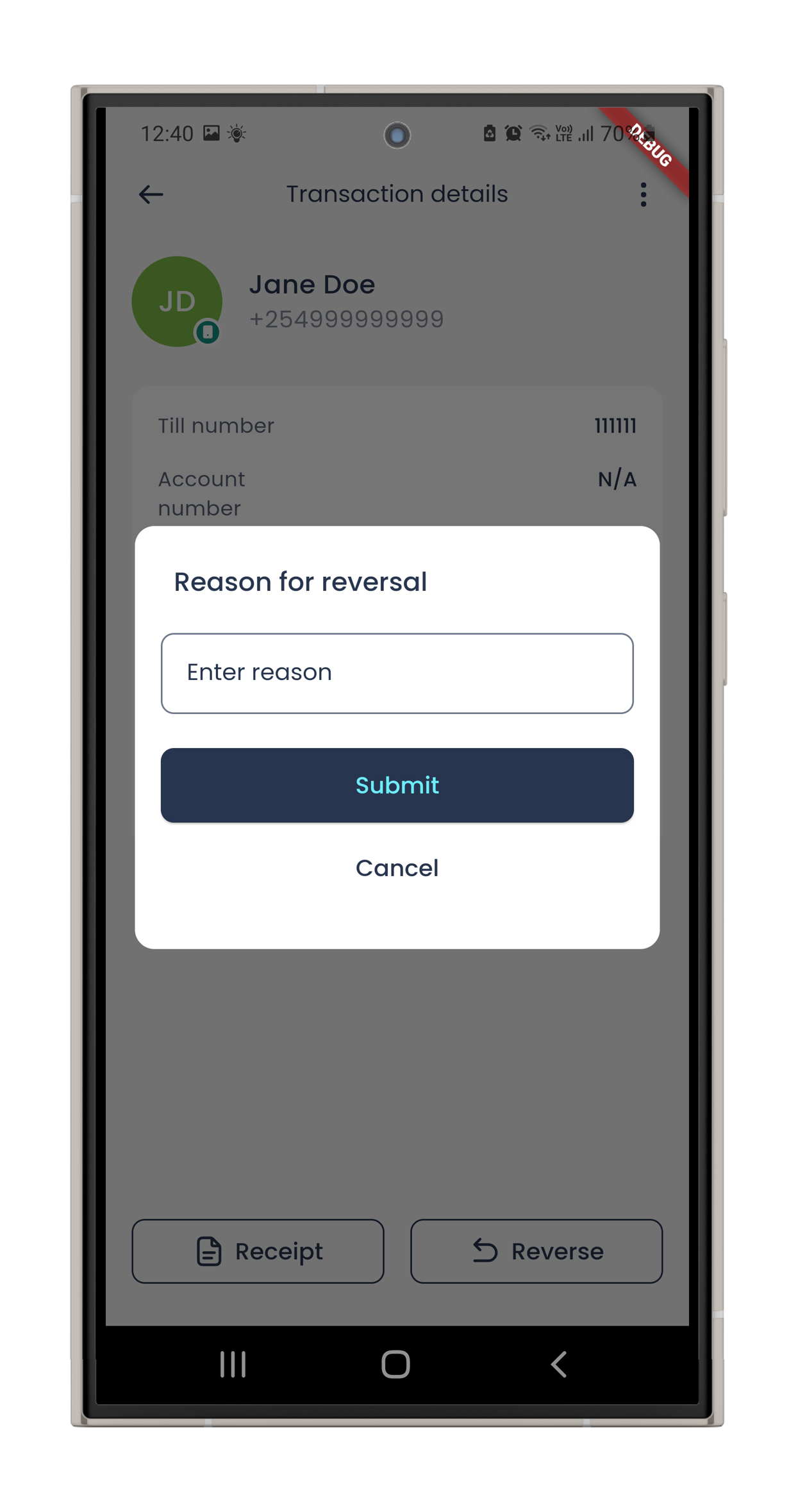 4: Enter a comment (reason for reversal) for reference and accounting purposes, and click Submit.