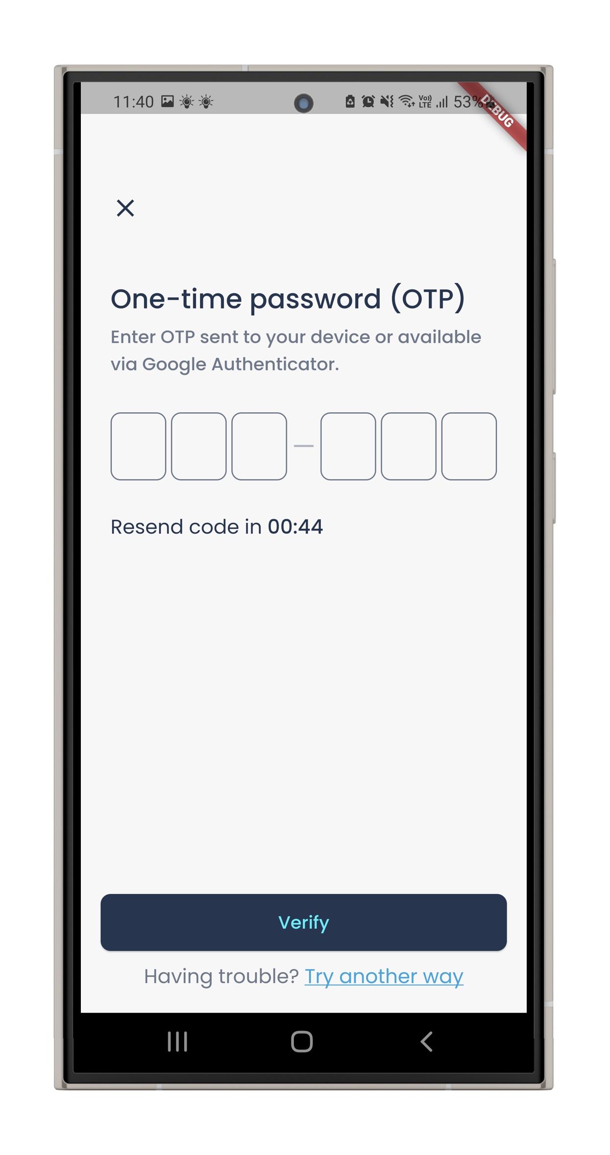 2: Enter the One-Time Password (OTP) sent to your registered phone number or found in your Google Authenticator app, then tap Verify.