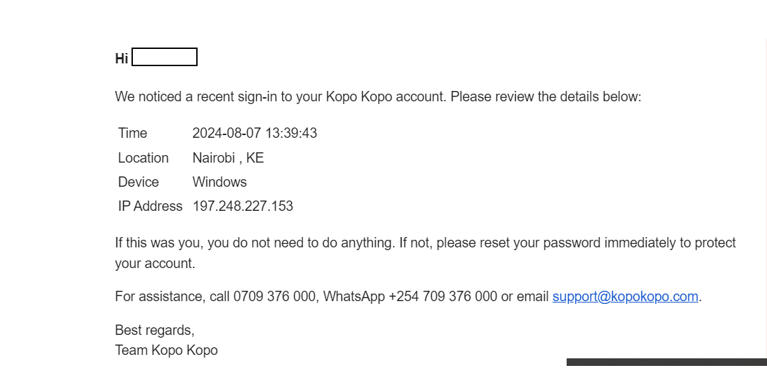 | Device sign-in alerts notify you when your account is accessed from a new device. You will receive details like the location, time, device and IP address. |