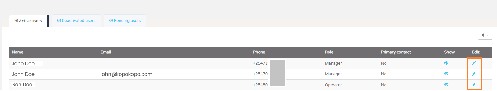 2: Find the user you would like to edit and click the pen icon.