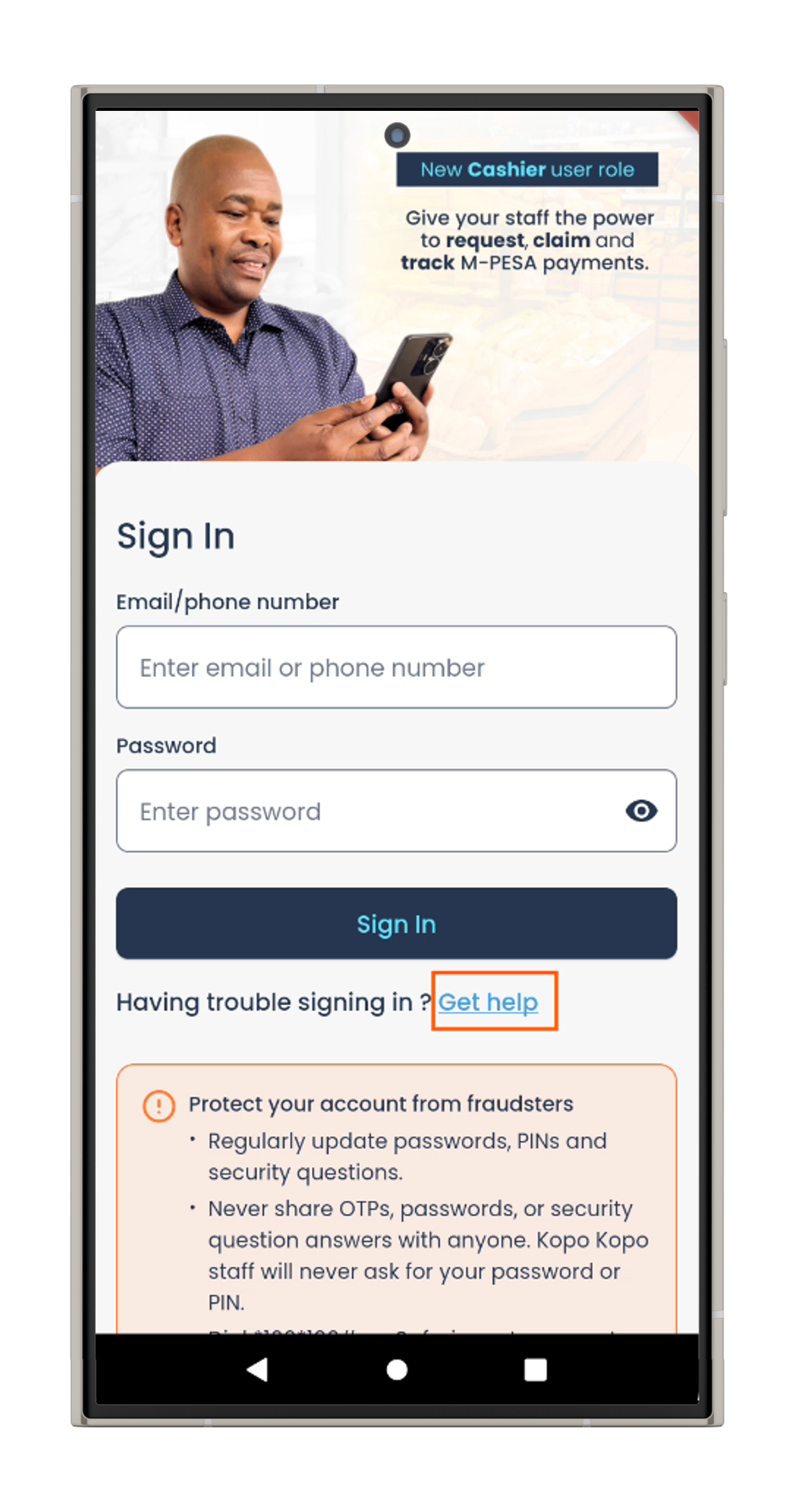 1: On the mobile app sign-in page, click Get help