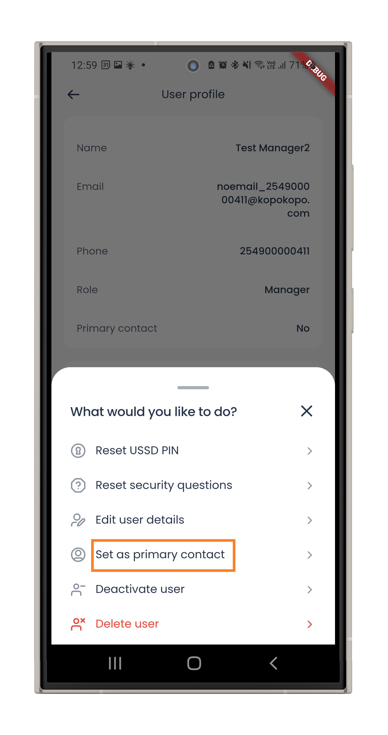6: Read the short explanation, then tap Set user as primary contact or Cancel.