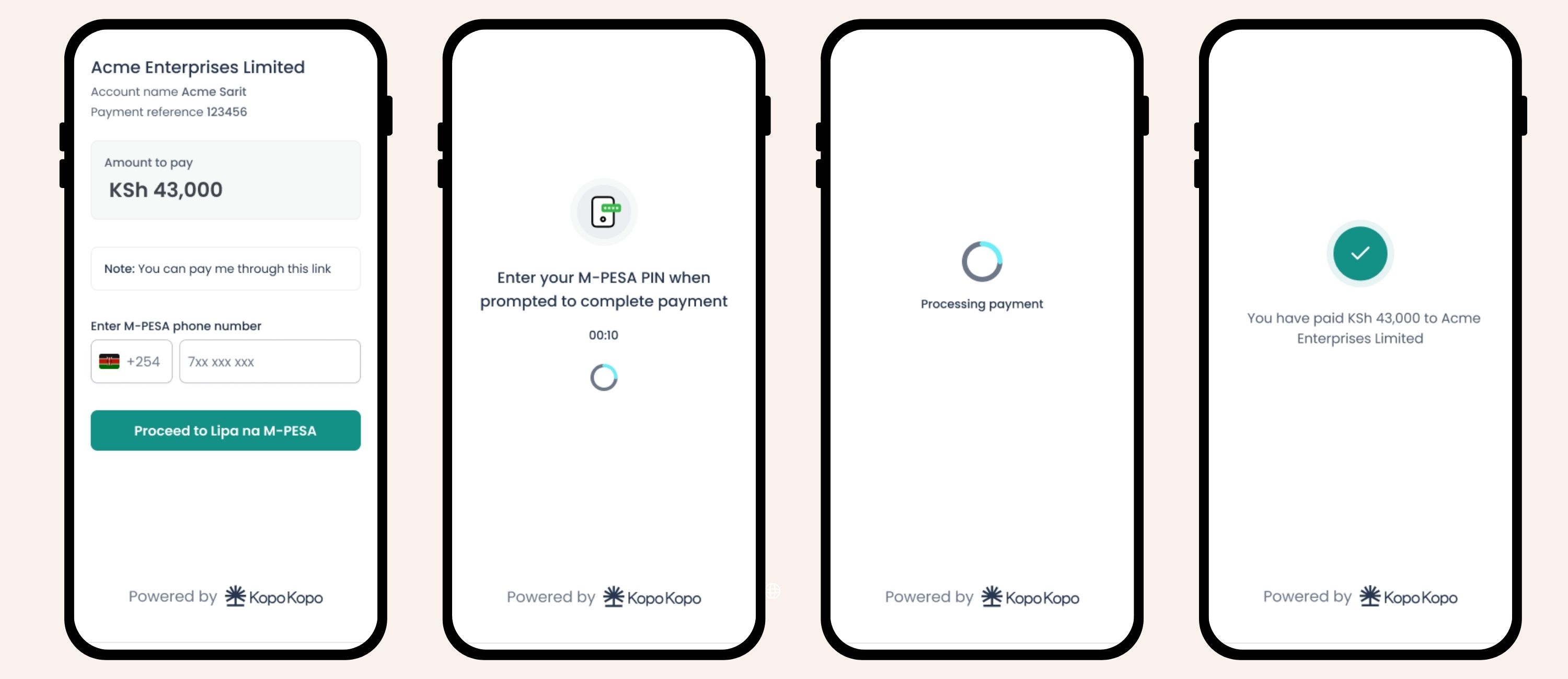 3: Enter their M-PESA when prompted via M-PESA STK Push.