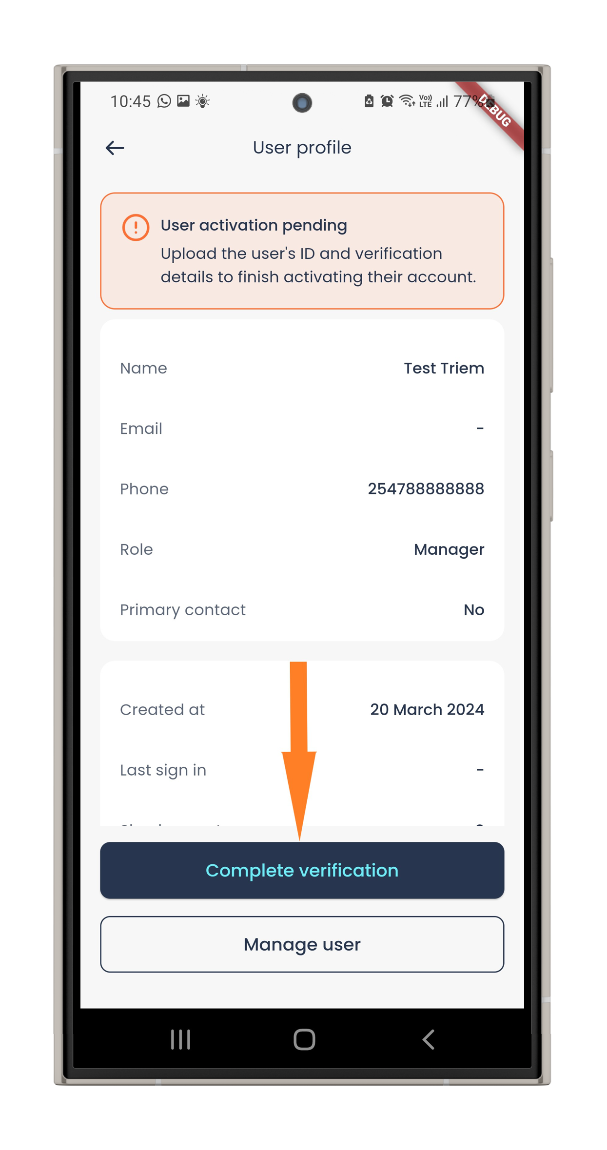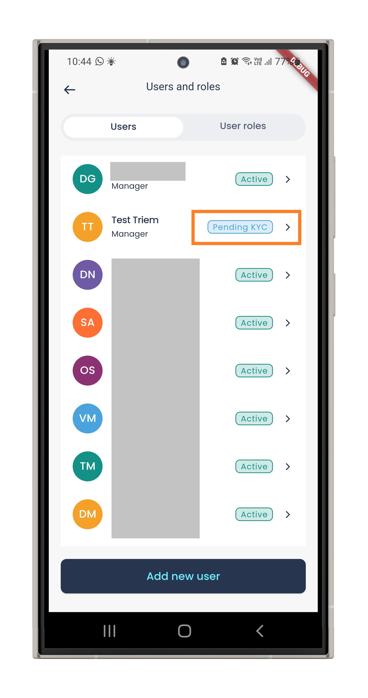 Tap Users and select the user with the Pending KYC status.